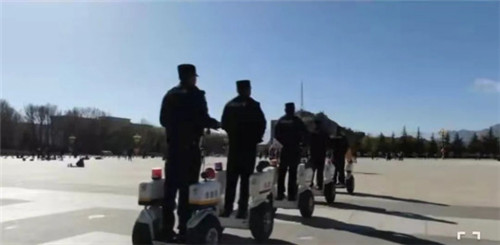 為了保證旅行者在布達拉宮出行安心、舒心、放心,拉薩市公安局城管分局廣場派出所成立2個巡邏隊,增設2個值守點,全天候不斷開展巡邏防范,每天陪伴民警的就是躍迪警用平衡車。