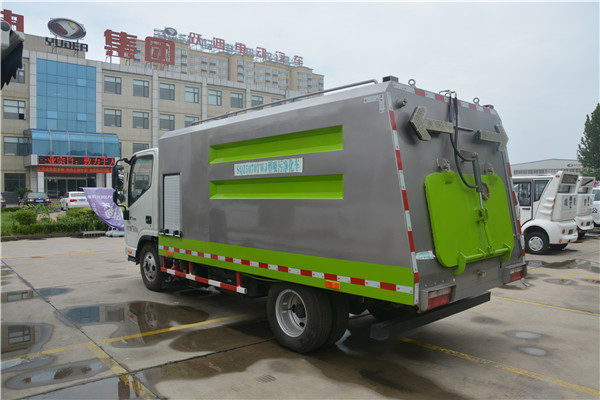 3、罐體封頭采用一次壓鑄成型、罐體可后開(kāi)、雙頂自卸,罐內(nèi)污物可通過(guò)后蓋直接傾倒。